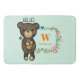 En badmatt designad med en söt illustration av en tecknad brunbjörn som håller en gult daisy. Omgiven av en dekorativ blommigt andedräkt med blommor, löv, sprit och hjärtan. Hösten färg. Anpassa med ett första monogram och namn.