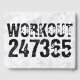 Utsliten och skrapad text Workout 247365 rustik i svart färg med vit bakgrund. Perfekt för alla som lyfter, tränar, bodybuilding och går på gymmet.