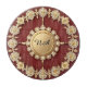 En fängslande komposition av intrikata gula blomster mönster som bildar en cirkulär form, vackert visad på en djupröd bakgrund, perfekt för teman som lyx, design och elegans.