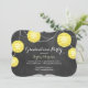 Det utsmyckade bandet skrivar och gulnar partylyktor på uppsättningar för en svart tavlabakgrund tona av denna studenteninbjudan och festar. Om extra objekt behövs i denna samling, kontakta precis oss med din förfrågan på prettyfancyinvites@gmail.com