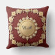 En fängslande komposition av intrikata guldb blomster mönster som bildar en cirkulär form, vackert uppvisad på en djupröd bakgrund, perfekt för teman som lyx, design och elegans.