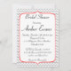 En anpassadeinbjudningskort för möhippan med en röd gräns och gråttsparredesign.