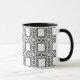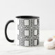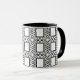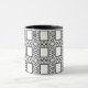 Denna eleganta dekorativa svartvita mugg presenterar en omgeende central för utsmyckat abstrakt krumelurmönster kvadrerar.