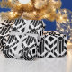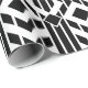 Stilfullt slående in papper presenterar ett utsmyckat svartvitt geometriskt mönster av randar och diamanter. Någon av diamantöverlappningen samla i en klunga av tre sätta en klocka på svart randar som, om de är hållande dem. Kolonner av svart diamanter med djärv vit skisserar separat triosna av randar. Mer ytterligare divide för vitstreck som avbilda in i delar upp.