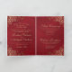 Denna vackra islamska eller muslimska bröllopsinbjudan har spetsigt guldsnöde kalligrafi och falska foliekrullar och virvlar på en djup marmorerad röd bakgrund. Fin, elegant, stilfull och klassisk, den frodiga och glamourösa känslan av denna inbjudan kommer säkert att imponera på dina bröllopsgäster. Inkluderar traditionell islamsk text och information om både Nikah-ceremonin och Walima-mottagningen.