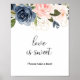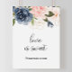Denna utsökta höstblommande kärlek är söt skylt är perfekt för en tropisk bröllopsdusch. Designen visar handritade rosa rodnad, mörkblå och marinblå fantasifulla blommor som inspirerar till elegans, klass och naturlig skönhet.