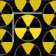 Mönster för utstrålningsvarningssymbol i svart och gult.