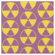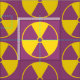 Mönster för utstrålningsvarningssymbol i lilor och gult.