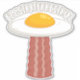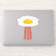 Tecknad av vektor illustration av en utsökt solig sida uppåt av frigjort ägg UFO med en gul bacon slice-traktorstråle med EGGSTRATERRESTRIAL text. Nyckelord: ägg, bacon, frukost, UFO, utomjording, solig, tecknad, rymd, utomjordisk, mat, söt, yolk, sci-fi, vetenskap, fiktion, martik, humor, kött, gris, bortförande