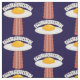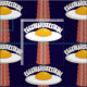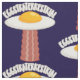 Tecknad av vektor illustration av en utsökt solig sida uppåt av frigjort ägg UFO med en gul bacon slice-traktorstråle med EGGSTRATERRESTRIAL text. Nyckelord: ägg, bacon, frukost, UFO, utomjording, solig, tecknad, rymd, utomjordisk, mat, söt, yolk, sci-fi, vetenskap, fiktion, martik, humor, kött, gris, bortförande