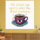 Lås upp din inre klarhet och mystiska energi med denna unika design. Perfekt för kaffefanatiker som tror att upplysning börjar med ett starkt shot espresso. En surrealistisk blandning av andliga vibrationer och kaffekultur