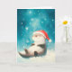Denna charmiga bild visar en lekfull utter som bär en festlig tomtehatt och ligger lyckligt i snön. Med sin buk exponerad och ett glatt uttryck utstrålar uttern ren semesterglädje. Snöflingor faller försiktigt från den ljusblå himlen och skapar en fridfull vinterscen. Utterns glada pose, i kombination med julhatten och det snöiga landskapet, fångar semesterns roliga och varma stämning. Bilden för med sig en känsla av nyckfullhet och glädje, perfekt för att lägga till en festlig touch till alla miljöer.