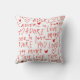 Kudden innehåller en lekfull mönster av handskriven ord som "KÄRLEK", "ADORE" och "FOREVER", blandad med hjärtformer, allt i rött bläck på vit bakgrund. Den överlappande och slumpmässiga arrangemanga för dessa inslag skapar en tät och synligt engagerande utformning. Mönster är en perfekt för att förmedla teman om kärlek och kärlek