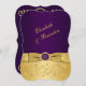 Den här elegant royalet lila och guld blommigt med scrollsars bröllopsinbjudan har ett tryckt guld-band och ett tryckt FAUX-präglat utseende lila och guld medaljon på det. Hela texten är anpassade, och det är också de pappra valen. Det skulle vara perfekt för ett vår, sommar-, fall- eller vinterbröllop eller något annat formellt evenemang. ***NOTERA ATT om man byter till guld-metallisk papper är det ett mycket mörk brassy guld och det kommer att ändra färgen på utformningen, så jag föreslår INTE att man använder detta papper. Om du ändrar typsnitt- eller teckenstorlek kanske inte texten längre passar som den ska. Zazzle kommer inte att redigera någonting för typos, justering eller något annat, och jag kommer inte att se er inbjudan. Allt skrivs ut som det visas på bildskärmen. Om du behöver hjälp med inbjudan, kontakta mig innan du beställer den. Den här inbjudan är designad för att passa det storleka böjda SHAPE-kortet 5x7. Om du byter till en annan storlek/form kanske designen inte längre passar som den ska, så om du vill ha en annan storlek kontaktar du mig så jag kan designa om den åt dig. Om du vill ha några andra matchande objekt i den här designen skickar du e-post till niteowlstudio@gmail.com.