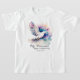 T-Shirt med inspirerande citattecken skildrar en vacker vit duva som flyger genom himmel, dess vingar med blå och lavendelfärgad stänk. Den innehåller en uppmuntrande bibelutvisning 33:14: "Min närvaro följer med dig, och jag ska vila dig i ge."