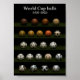 Spåra den otroliga historien om världens största turnering genom denna omfattande informationsaffisch om "VM-bollar". Från de tunga läderremmarna på 1930 års T-Model till den högteknologiska Al Rihla 2022 visar denna design den visuella utvecklingen av fotbollsmatchbollar under nästan ett sekel. Varje rad belyser övergången från klassiskt brunt läder till den ikoniska Telstar, Tango, Jabulani och vidare. Mot en mörk, dramatisk bakgrund som får varje boll att sticka ut är detta tryck den ultimata dekorationen för sporthistoriker, fotbollstränare och fans som uppskattar spelets tekniska skönhet.