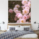 Grenar av romantiskt pulver rosa ros på mörkens bladbakgrund, fotografi.