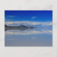 Uyuni-saltslättor i Bolivia med skylin och berget reflekterat i de vatten-täckta slätterna.