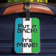 Uzbekistans nationella Flagga Lungny Patriotic Luggage Tag med Uzbekistans nationella färg som täcker märkrns framsida. Lustigt text "Sätt tillbaka den!" Det är MINE" är skrivet över flagga färg. Anpassadet Text är fullt ut med funktionen "Anpassa den!". Andra sidan av märkrn är reserverad för din information. Den här roligten är Uzbekistans bagagemärke en perfekt följeslagare till din resväska och den vackra gåvan till tillfälle. © LänderAvVärlden