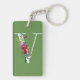 V Bokstav Initial Monogram Blommig Anpassad Färg