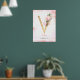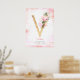V Brev Monogram Guld Löv Rosa Magnolia Blommigt Poster
