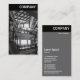 En mall för visitkort för lodrät med ett svart huvud med en bild framtill. Företag namn i sidhuvudet på framsidan och baksidan med Alla andra kontaktuppgifter på baksidan. Fotot eller bilden på framsidan kan också ändras. Utformningen ger också gott om utrymme för ytterligare anpassning.