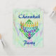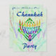 Färgrik målad menorah med abstrakt grön mönstrad bakgrund. Chanukah-design. Anpassade inbjudningar - lägg bara till din egen information i de angivna utrymmena.