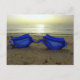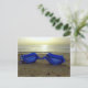 Vacationstid, blå glasögon på stranden vykort