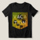 T-shirt-skjorta med vacationsgrafik med coola handflatan träd. Grafik och typografi är på framsidan av denna t-shirt. Gult med orange, grönt och vitt färg.
