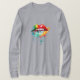 Den här T-shirt-konstruktionen har ett par stora, lätt öppna läppar som är färgade med klara vattenfärgsnyanser, vilket framkallar en känsla av roligt, party och vakationer. Den färgade paletten innehåller nyanser av turkos, shock rosa och gult, med stänk vitt för en sommarkänsla. Den totala effekten är fet och öga-fångst, perfekt för att skapar påstående vid vilken party som helst eller på vilken strandsemester som helst. Den här designen fångar sommarens varsamma och äventyrliga anda och kommer säkert att vända huvudet var det än bär.