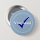 Ord "Vaccinerat" i vit text på en baby blue knapp. Bakom texten finns en mörk blått bock.