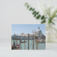 Vykort från gondolas och gondoliers vatten vid Grande vid kanalen med Santa Maria della Salute-kyrkan i bakgrunden skapande ett romantiskt stadslandskap under sommarens helgdagar i Venedig, Italien.
