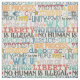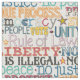 Ursprungligen ritad med bläck, politisk typografisk mönster som inkluderar vakna upp, stå upp, enhet, rösta, makt till folket, lagens regel, inga kungar, frihet, ingen människa är olaglig, ingen rättvisa, ingen fred, vederbörlig process, protest och demokrati.