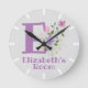 Väckarklocka till barnkammare med namn & initial rund klocka