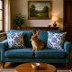 💙 VackblĂ„ Azulejos, storlek medelplatta Kudde