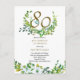 Denna vackert eleganta födelsedagsinbjudan med gröna blad och löv samt vit med en antydan till blå blommor är perfekt för en 80-års födelsedagsfest för mor eller far, mor- och farföräldrar, kollega eller annan. Redigera helt enkelt texten så att den passar dina exakta behov. Den har moderna handskrivna och kalligrafiska typsnitt i guld och svart.