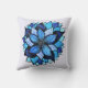 Blomkudde i abstrakt med en illustration av blåblomman i hand plockade bläck, där många blad i olika blå nyanser påminner om en mandalateckning.
