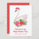 Detta vackra klassrums valentinskort har en svan målad i akvarell, tillsammans med blomster element i rött, magenta rosa och grönt. Ordlekstexten lyder, "Jag vill bara säga...Glad Alla Hjärtans Dag!" Baksidan av kortet har ett mönster av vita hjärtan över en anpassad färgbakgrund (visas i matchande rött).