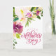 Vacker akvarell blomsterbukett, kort för mors dag. Kortet har "Grattis på mors dag", fet rosa handskrift. Mallen ger utrymme för ditt anpassade meddelande, eller ta bort texten och lämna tomt för ett handskrivet meddelande.