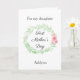 En vacker akvarell lager- och rosa blommor första mormorsdag dotter-kort, som du enkelt kan anpassa på framsidan med hennes namn. Det interna meddelandet i detta vackra dotter första mormorsdag-kort innehåller ett hjärtligt meddelande, som du också kan anpassa om du vill. Baksidan har samma akvarell lager med rosa blommor med en plats för dig att skriva barnets namn och "mamma" eller vad du vill. En söt mormorsdagspresent som är personlig och garanterat skattas.