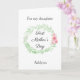 Ett vackert akvarell lager- och rosa blommor första mors dag dotter-kort, som du enkelt kan anpassa framsidan med hennes namn på. Det interna meddelandet på detta vackra dotter första mors dag-kort innehåller ett hjärtligt meddelande, som du också kan anpassa om du vill. Baksidan har samma akvarell lager med rosa blommor med en plats för dig att skriva barnets namn och "mamma" eller vad du vill. En söt mors dag-suvenir som är personlig och garanterat skattas.