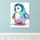 Detta är det vackra, fantasifulla akvarellbaby-pingvin barnkammaren väggkonst canvastryck.