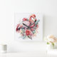 VACKER AKVARELL ROSA FLAMINGO MED BLOMMOR FYRKANTIG KLOCKA