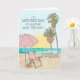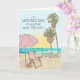 Fira mammas dag med detta vackra kort med en akvarellillustration av stranden med fina palmer, strandparasoll, stol, vågor som bryts mot stranden och den uppgående solen. Framsidan av kortet har frasen "Idag är det mors dag! Gör vad som gör dig lycklig". Insidan av kortet har ett förtryckt meddelande som du kan anpassa och lägga till ditt eget namn.