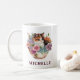 Vacker akvarellbrokig katt och blommor kaffemugg