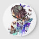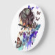 VACKER AKVARELLKVINNA MED FJÄRILAR STOR KLOCKA