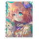 Vacker Animeflicka med sött litet katt Anteckningsbok