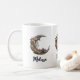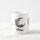 Ett mugg med en vacker illustration. En feminin ansikte i måne omgiven av blommor.