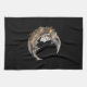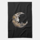 En kökshandduk med en vacker illustration. En feminin ansikte i måne omgiven av blommor.