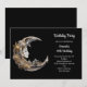En födelsedagsinbjudan med en vacker illustration. Ett feminint ansikte i månen omgivet av snygga blommor.